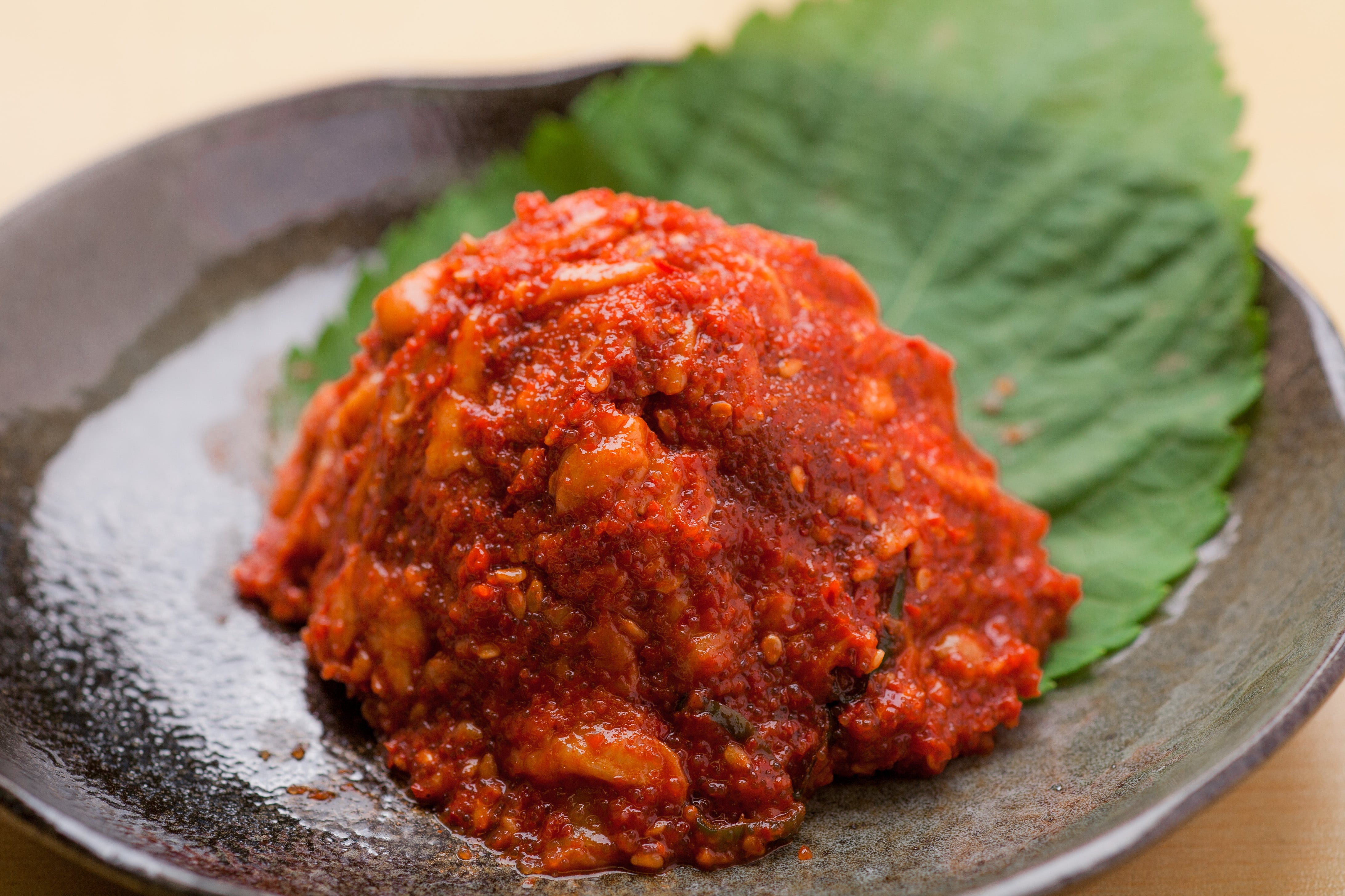 韓国珍味の代表格チャンジャに、プチプチ食感のとびっこを合わせました。
